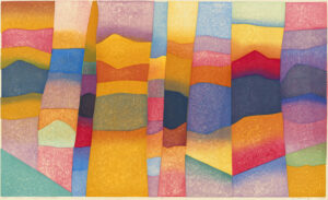 内間安瑆《Forest Byobu (Autumn-Stone)》1979年 多色木版、紙 個人蔵