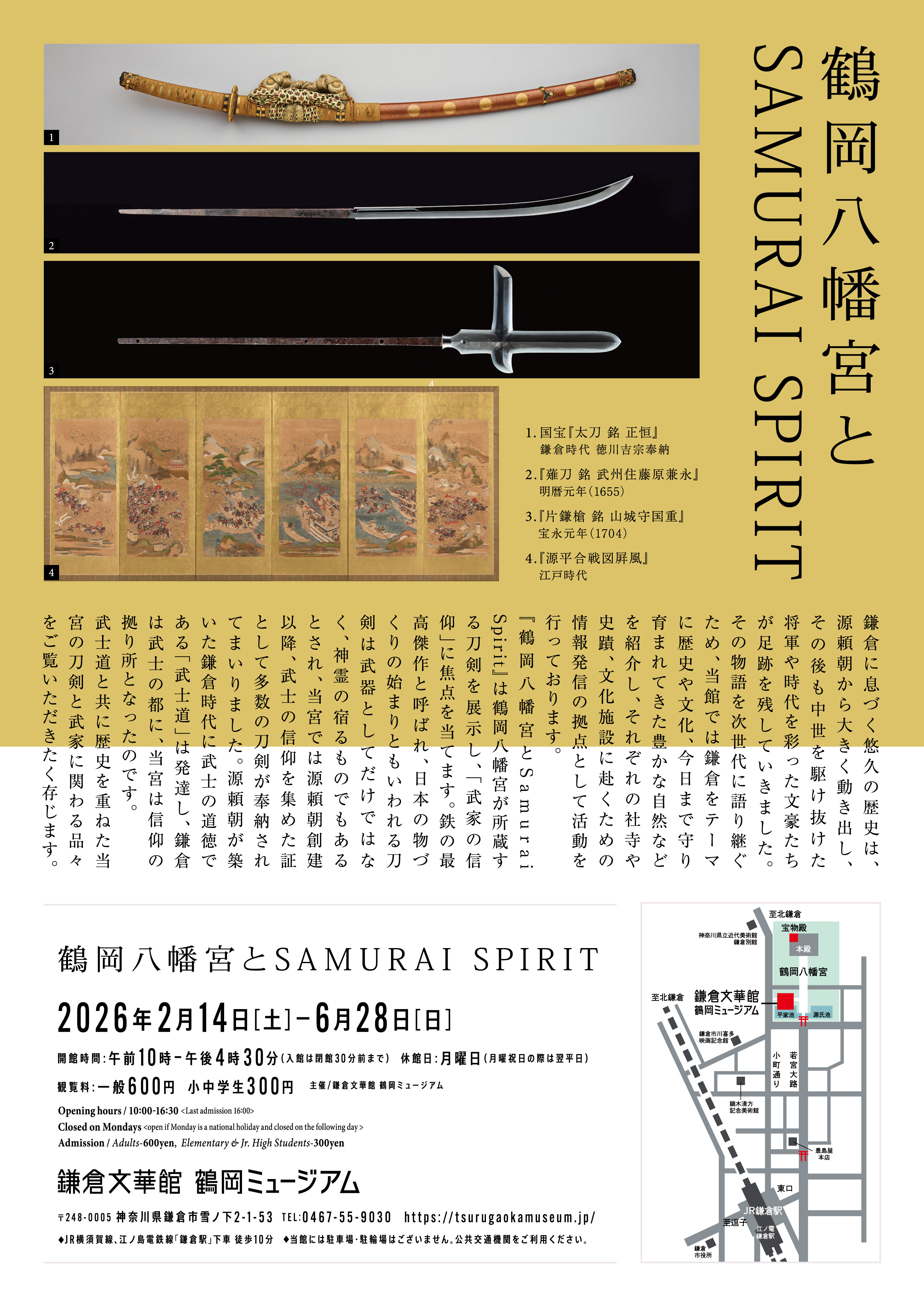 「鶴岡八幡宮とSamurai Sprit」2026/2/14~6/28 鎌倉文華館 鶴岡ミュージアム