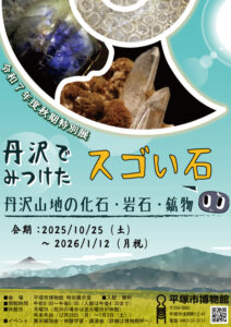 秋期特別展「丹沢でみつけたスゴい石 丹沢山地の化石・岩石・鉱物」2025/10/5~2026/1/12 平塚市博物館