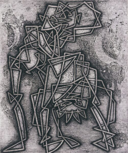 日本で銅版画に取り組む芸術家が急速に増加するのは、1950年代に入ってからです。材料や道具、学ぶ場が限られたなかで果敢に技法を取得し、独自の表現へと昇華させた銅版画家が多くいました。当館収蔵作家の中から、そうした銅版画界の黎明期に新しい表現を求めた菅野陽(すがの よう・1919-1995)と浜田知明(はまだ ちめい・1917-2018)を紹介します。